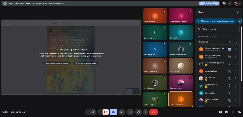 - особливостям коректного використання інструментів штучного інтелекту в навчальній і науковій діяльності, зокрема з наголосом на необхідності дотримання принципів прозорості, авторства та відповідального використання ШІ;